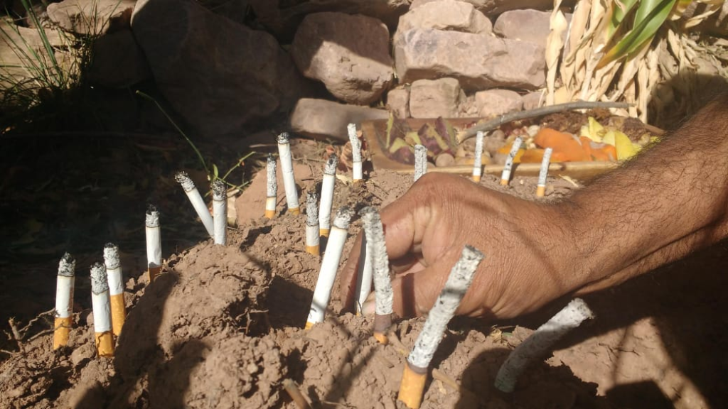 «La Pachamama tiene un significado profundo porque es el inicio del barbecho. En esta época del invierno limpiamos los canales, podamos las plantas, y el barbecho es la tarea de dar vuelta la tierra para que mueran los gusanos que están abajo en medio de las piedras, en medio de la tierra. Y nos preparamos para trabajarla».