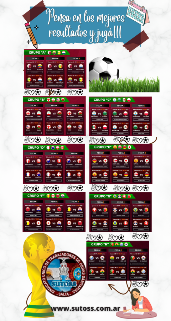 Vivamos juntos cada etapa del Mundial de Qatar 2022. En este torneo virtual vas a poder elegir los resultados para consagrarte campeón del Mundialito. ¡Habilitado para todos los compañeros del Sindicato!
