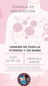 Nuestro SUTOSS, junto a la empresa CoSaYSa, se complace en invitar a sus afiliadas a participar de la «Charla de Prevención de Cáncer de Cuello