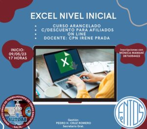 Ya se encuentra abierta la inscripción para el curso de EXCEL NIVEL INICIAL organizado por la Secretaría de Actas, Capacitación y Becas de la FeNTOSy