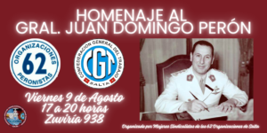 Mujeres Sindicalistas de las 62 Organizaciones Peronistas de Salta, invitan al encuentro organizado para homenajear los 50 años del fallecimiento del General Juan Domingo Perón;