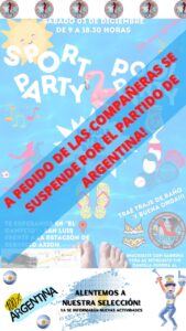 El Secretario General, Pedro H. Cruz Romero, informa que la jornada deportiva programada para el día Sábado 03/12 en el sitio «El Campito» de San