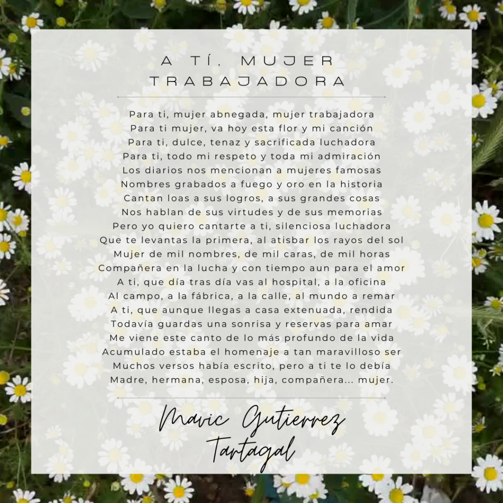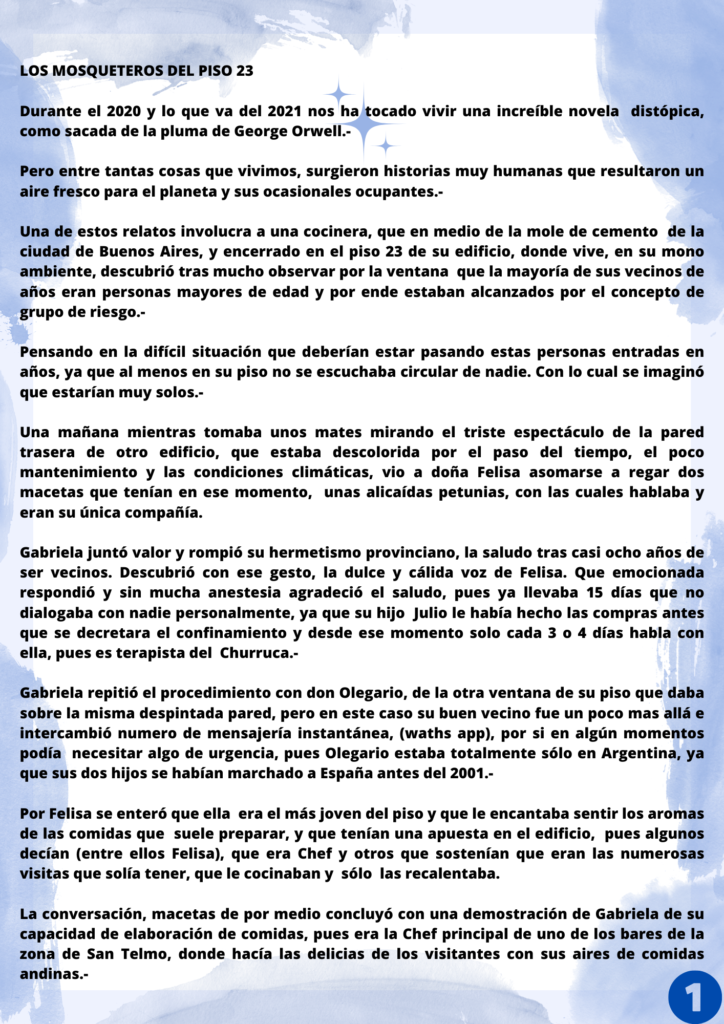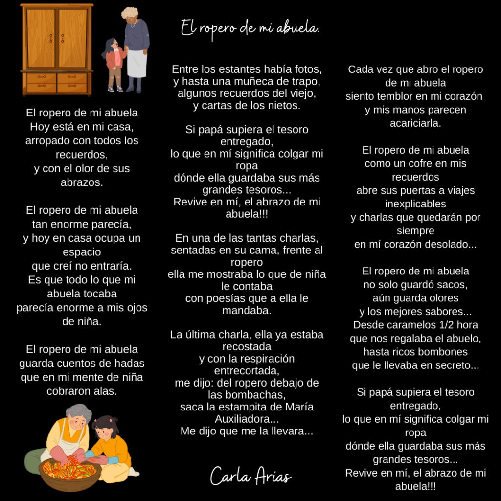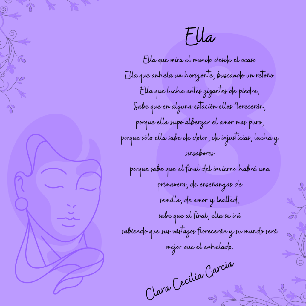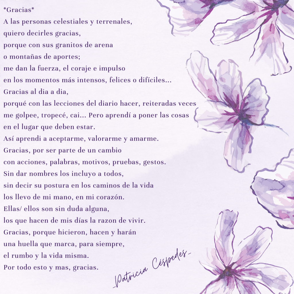 María Isabel Términe, quien formó parte del jurado, escribió la primer poesía, sin ser partícipe de la selección, (por razones obvias) demostró una vez más que era la persona correcta para seleccionar a los mejores escritores. También agradecemos la excelente colaboración de Stella Mimessi, quien desinteresadamente, y con la experiencia que tiene, se tomó el tiempo necesario de formar parte del Jurado.