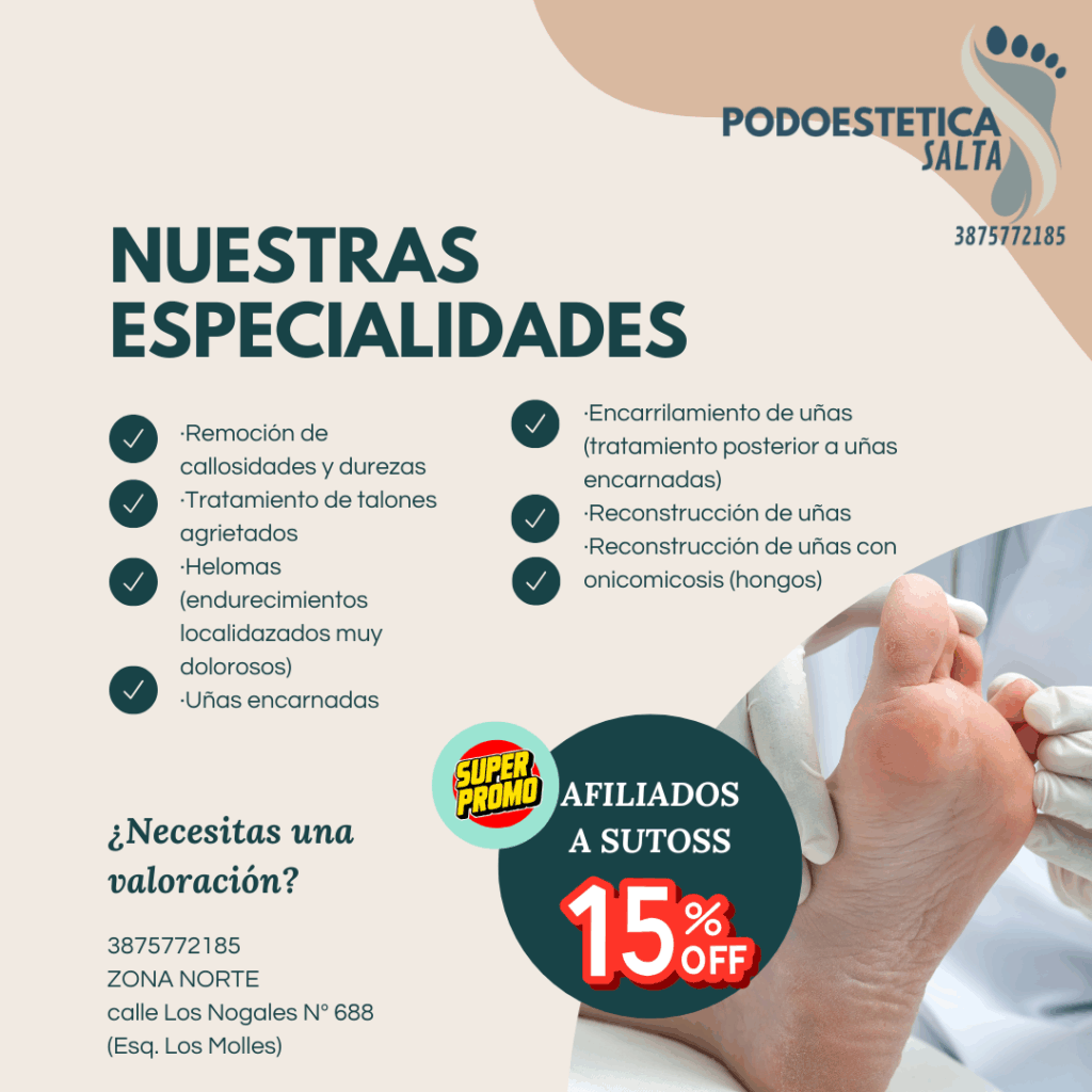 NO DEJES DE CUIDAR TUS PIES CON PODOESTÉTICA SALTA Y SUTOSS!!!