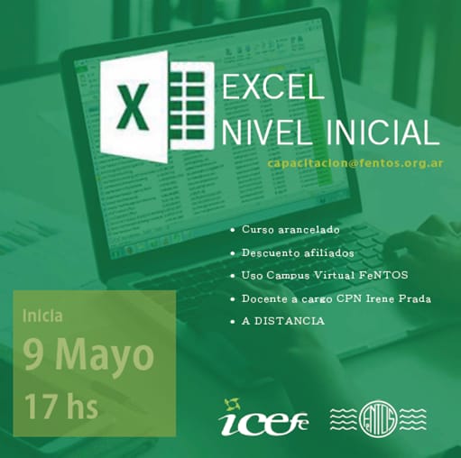 Ya se encuentra abierta la inscripción para el curso de EXCEL NIVEL INICIAL organizado por la Secretaría de Actas, Capacitación y Becas de la FeNTOS