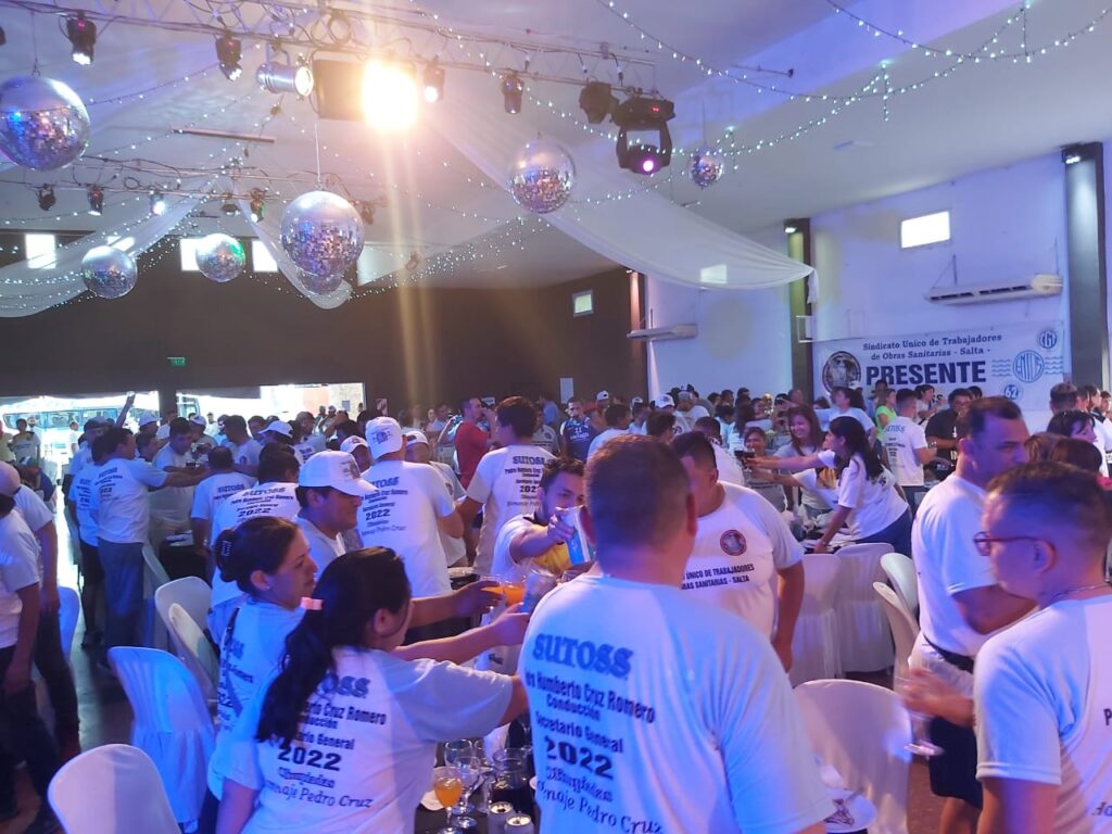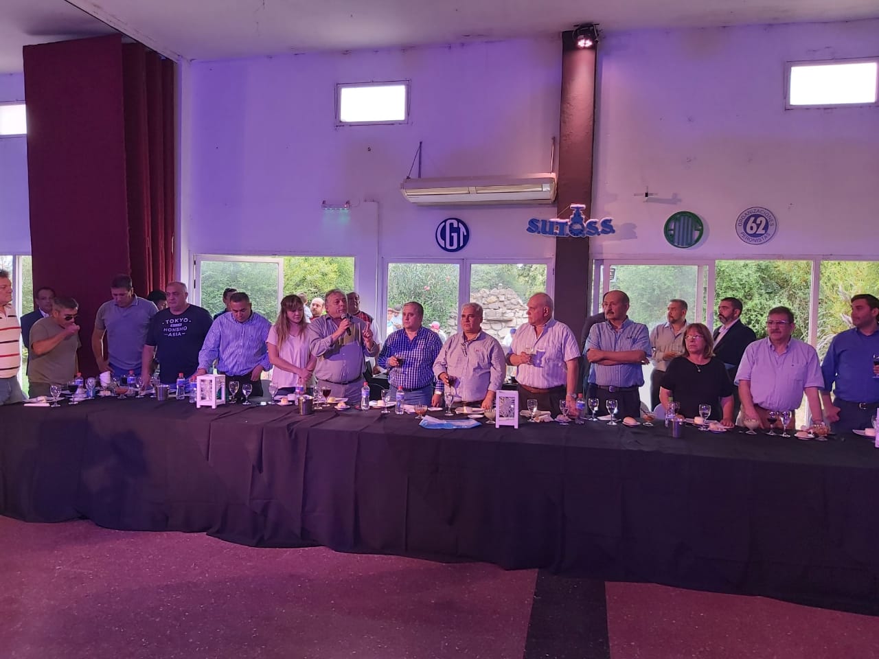 Se ponen de pie todas las autoridades y junto con los compañeros y compañeras, brindan por una unidad mayor y prosperidad en las fuentes y recursos de trabajo.