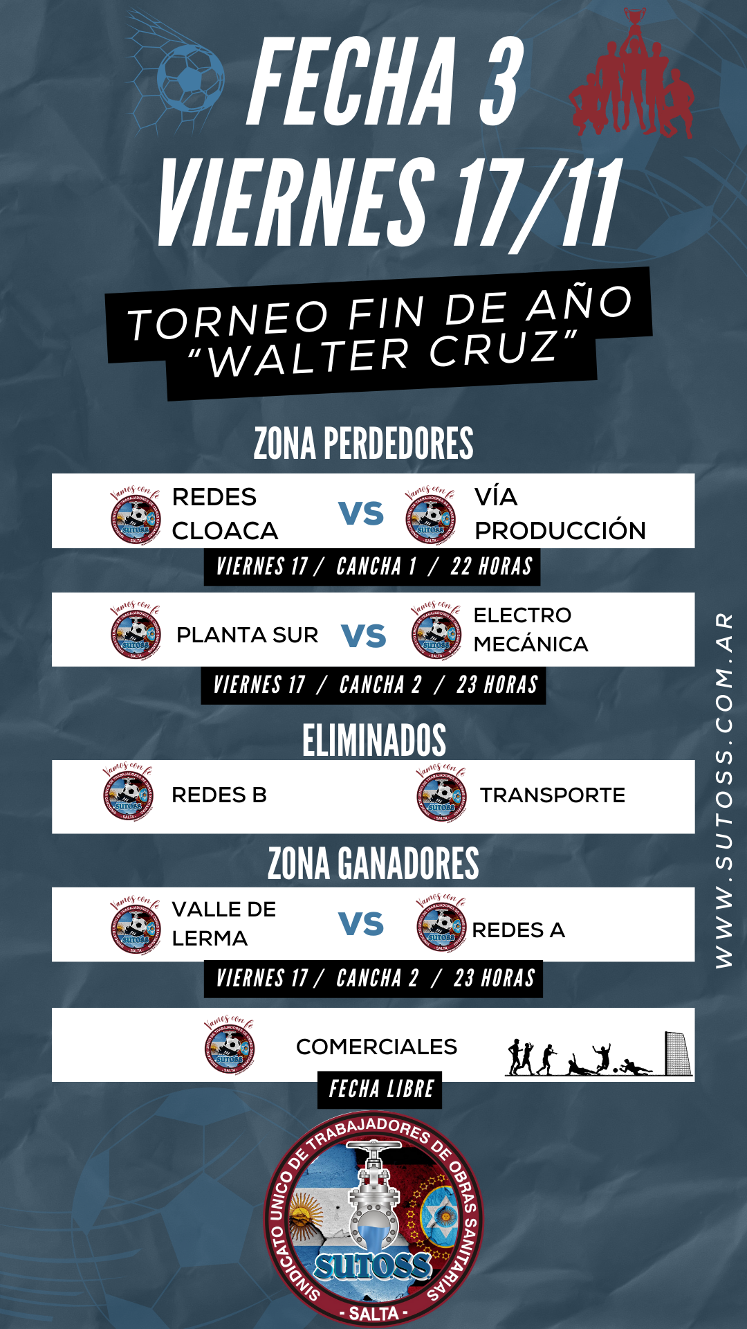 Aquí les dejamos el Fixture de la tercera fecha del Torneo «WALTER CRUZ» de Fin de Año: