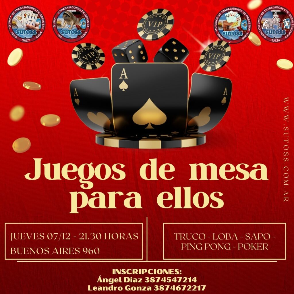 El SINDICATO ÚNICO DE TRABAJADORES DE OBRAS SANITARIAS SALTA, se complace en invitar a todos los compañeros que deseen participar en LOBA, TRUCO, PING PONG, SAPO y POKER!!!