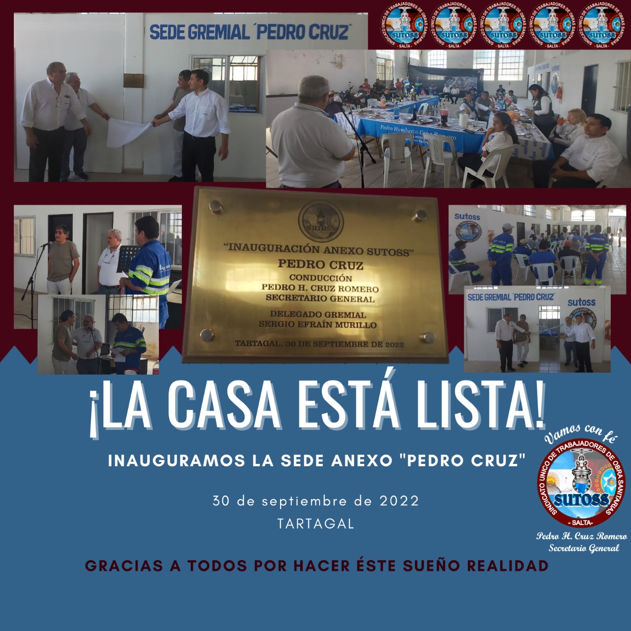 El día Viernes 30 de Septiembre quedó oficialmente inaugurada la sede gremial que nuestro SUTOSS tiene en la ciudad de Tartagal, luego de un arduo y constante trabajo de los compañeros de la localidad.