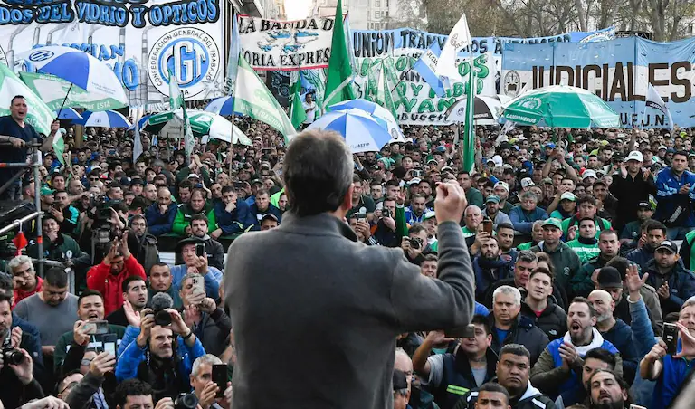 De cara a las generales de octubre, el candidato a presidente oficialista advirtió: “Lo que se define en los próximos 45 días es si los trabajadores pierden sus derechos, sus hijos el derecho a la universidad pública o si somos un país industrial. Pensando en el país, en el futuro y en el trabajo y en los que no tienen trabajo, pensando en la universidad pública, les pido hagamos un esfuerzo para construir el 22 de octubre el triunfo de los trabajadores, de la Argentina. O volvemos a 2015 o caminamos adelante”.