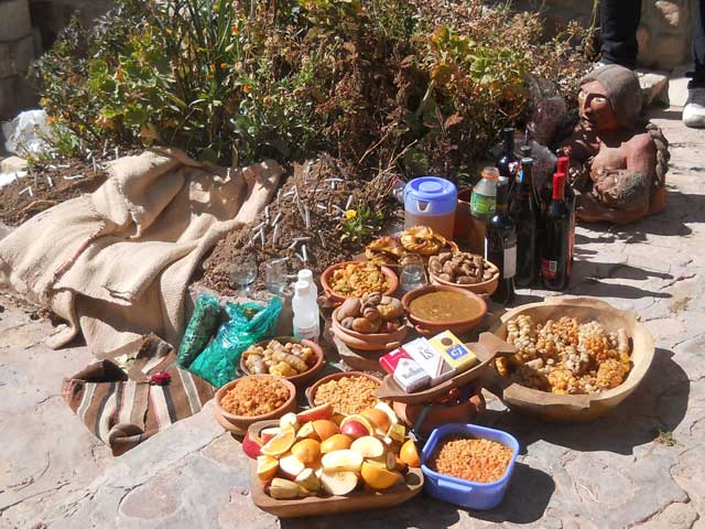 La noche anterior al 1 de agosto, las familias se preparan para honrar a la Pachamama cocinando toda la noche. El anfitrión de la reunión luego hace un agujero en el suelo. Si la tierra sale bien, significa que será un buen año; si no, el año no será abundante. Antes de que se permita comer a cualquiera de los invitados, el anfitrión debe entregar un plato de comida a la Pachamama. La comida que se dejó a un lado se vierte en el suelo y se recita una oración a la Pachamama.