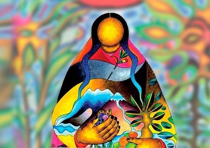 Después de la colonización española de las Américas, los conquistadores forzaron a los nativos a adoptar el catolicismo romano. Debido al sincretismo religioso, la figura de la Virgen María se asoció a la de la Pachamama para muchos de los indígenas.