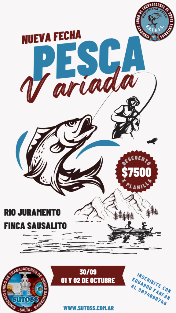 Prepará tú equipo de Pesca!!! El Sindicato Único de Trabajadores de Obras Sanitarias de Salta, tiene el placer de invitar a los afiliados amantes de la pesca, a la 4ta fecha de PESCA VARIADA DE RÍO.