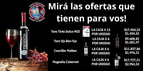 A través del mismo, la BODEGA le ofrece a los afiliados al S.U.T.O.S.S. y a sus empleados, precios especiales pagando de contado efectivo, y/o transferencia, y como lo hacemos habitualmente, para poder acceder a éstos descuentos, deberán acreditar frente a FECOVITA, que son afiliados al Sindicato, mostrando sus respectivos recibos de sueldo y DNI.
