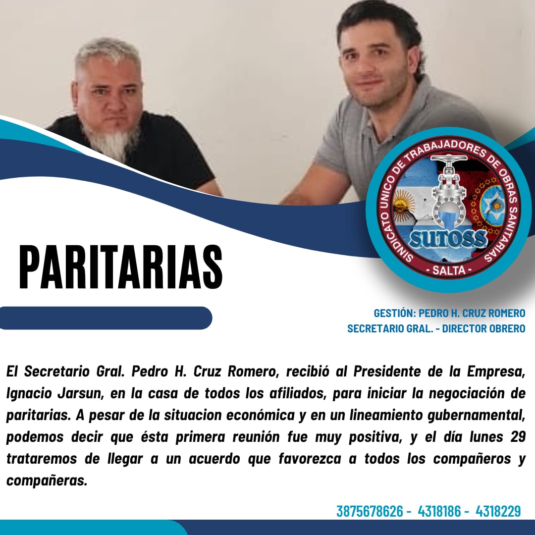 El Secretario Gral. Pedro H. Cruz Romero, tras reuniones mantenidas con el Presidente de la Empresa, Ignacio Jarsun, informa a los compañeros y compañeras que está garantizado el cobro del plus vacacional, como así también la reapertura de paritarias, a pesar de la situacion económica y en un lineamiento gubernamental.
