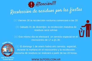 👉🏼 El domingo 1 de enero habrá otro servicio especial, durante la mañana en el microcentro y la recolección nocturna de residuos se realizará a partir de las 20 horas.