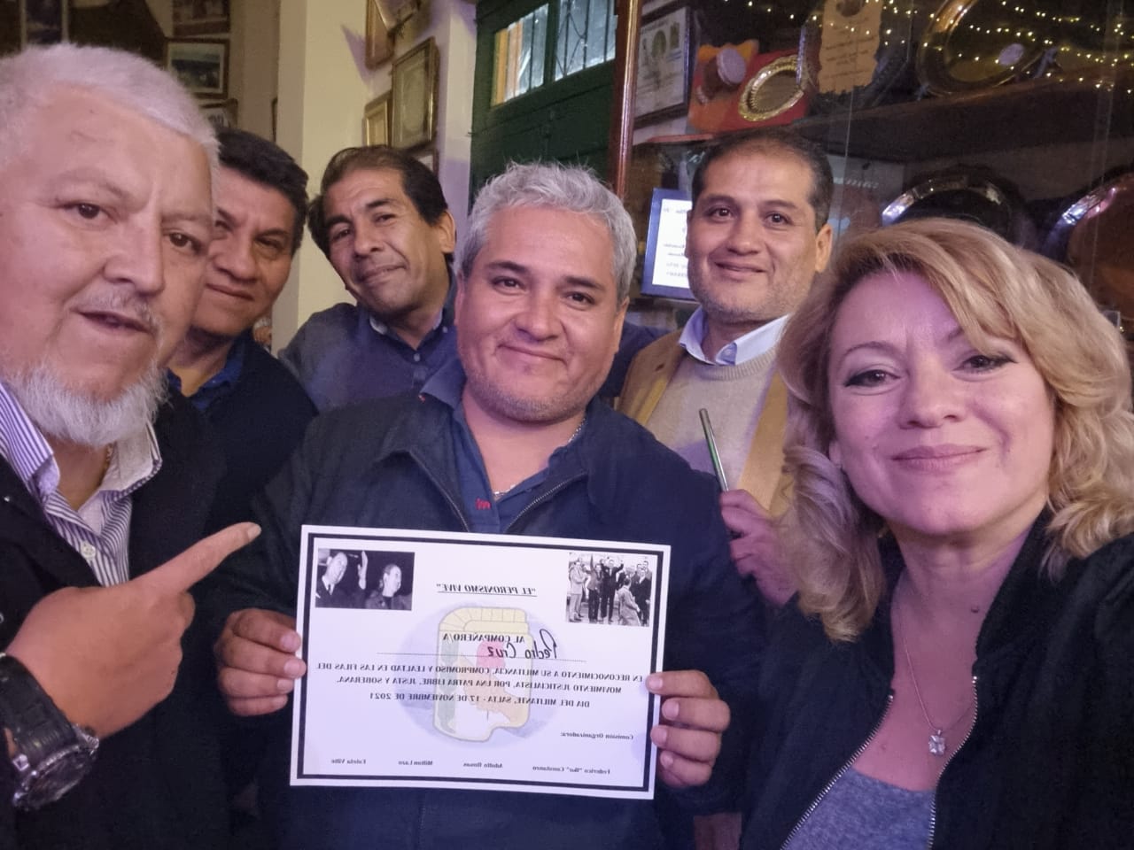 El día 17 de Noviembre del corriente año, en el marco del Día de la Militancia, nuestro Secretario General, Pedro Humberto Cruz Romero, recibió un reconocimiento destinado a su padre, Pedro Cruz, quien fuera activo militante peronista, representante del SUTOSS y dirigente a cargo de las 62 organizaciones sindicales.