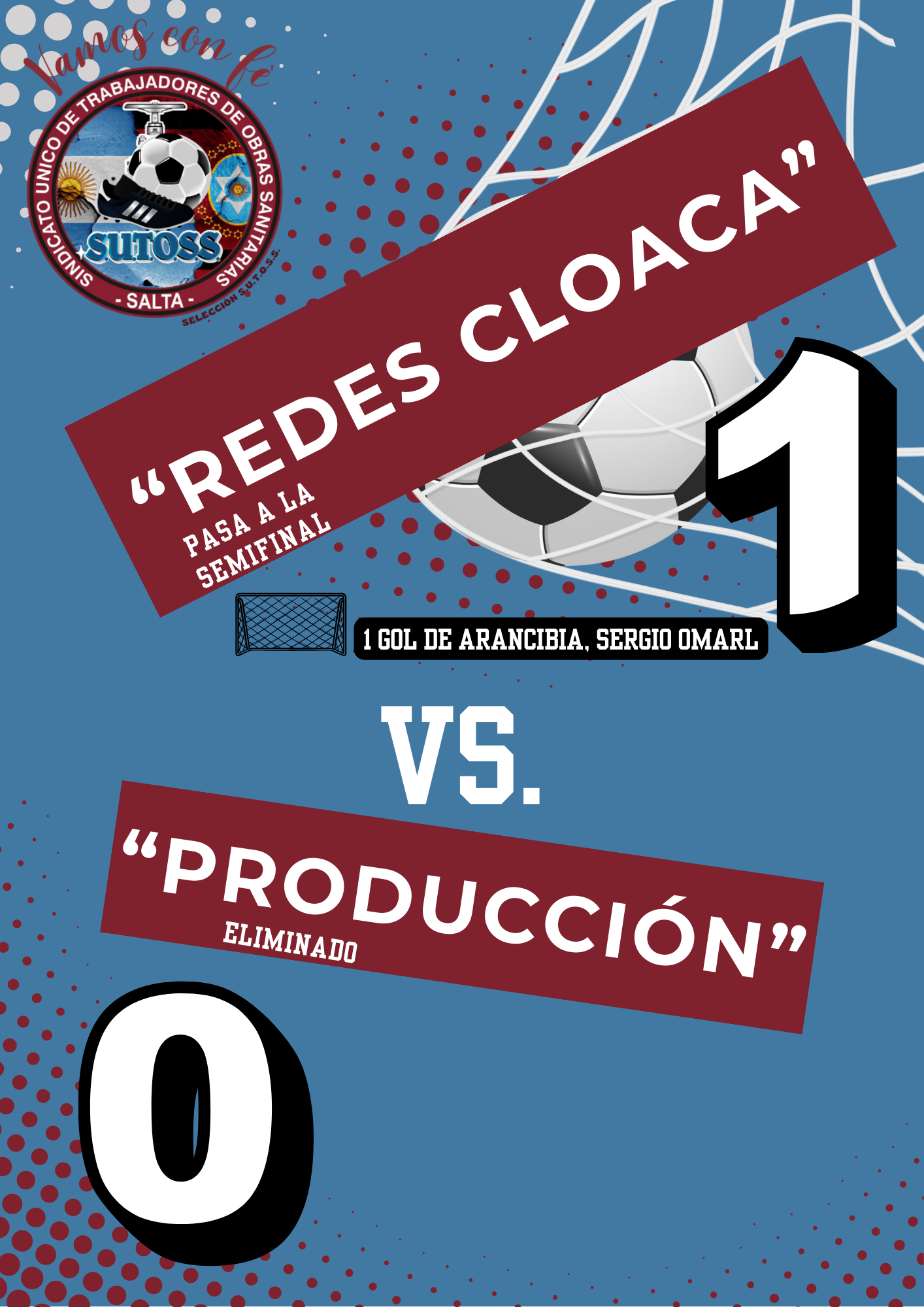 Con un gol del compañero Sergio Arancibia del equipo REDES CLOACA, vencieron al equipo de PRODUCCIÓN que no pudo anotar ningún tanto y quedó fuera del Torneo.