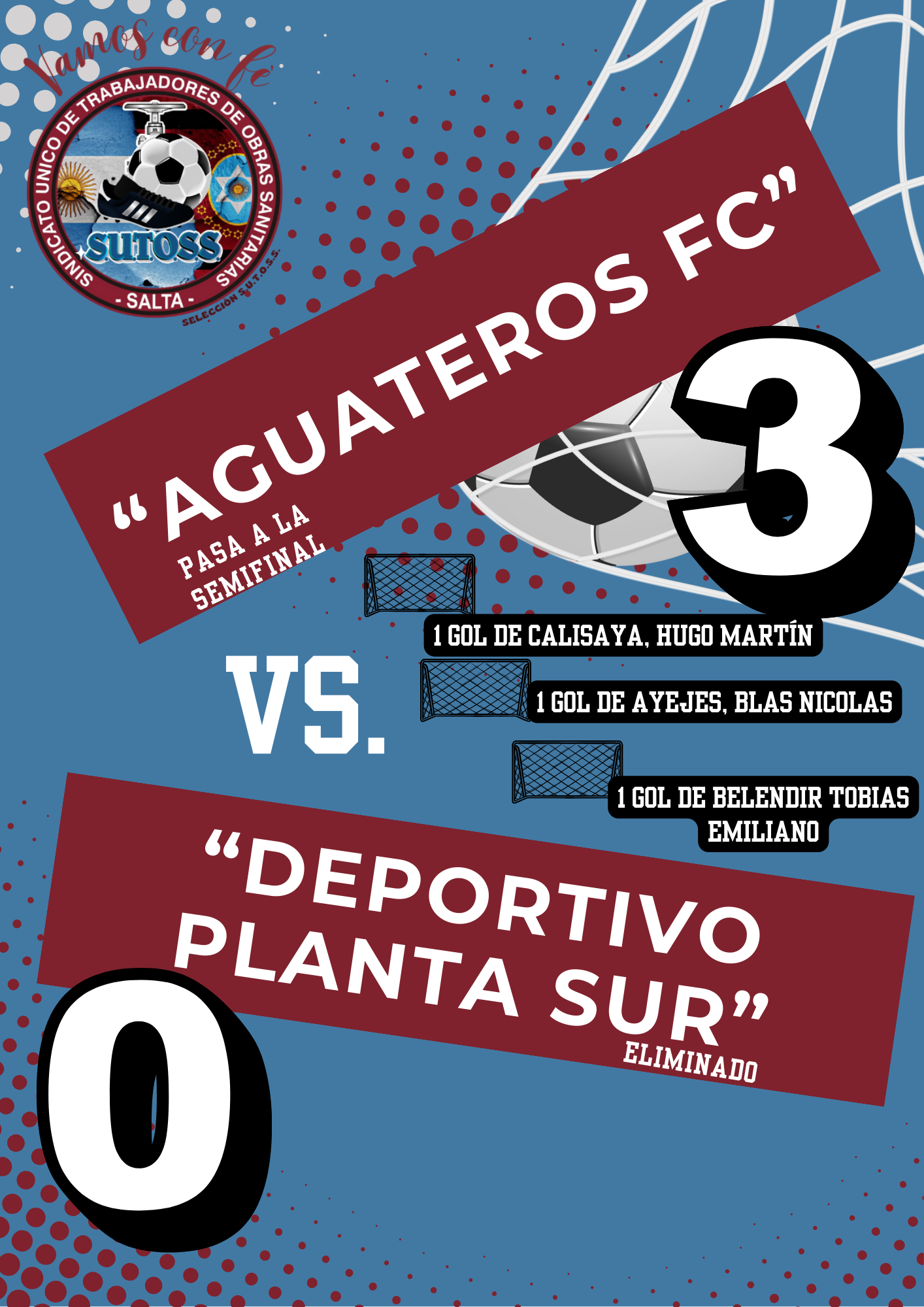 En un partidazo cargado de emoción, con tantos de los compañeros Calisaya, Ayejes y Belendir, del equipo AGUATEROS FC, dejaron fuera del torneo a DEPORTIVO PLANTA SUR con un contundente 3 a 0.