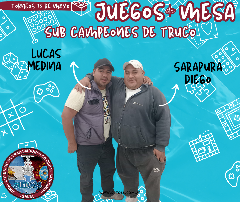 El día Viernes 03 de Mayo se llevaron adelante las distintas categorías de juegos de mesa para los compañeros afiliados al SINDICATO ÚNICO DE TRABAJADORES DE OBRAS SANITARIAS SALTA.