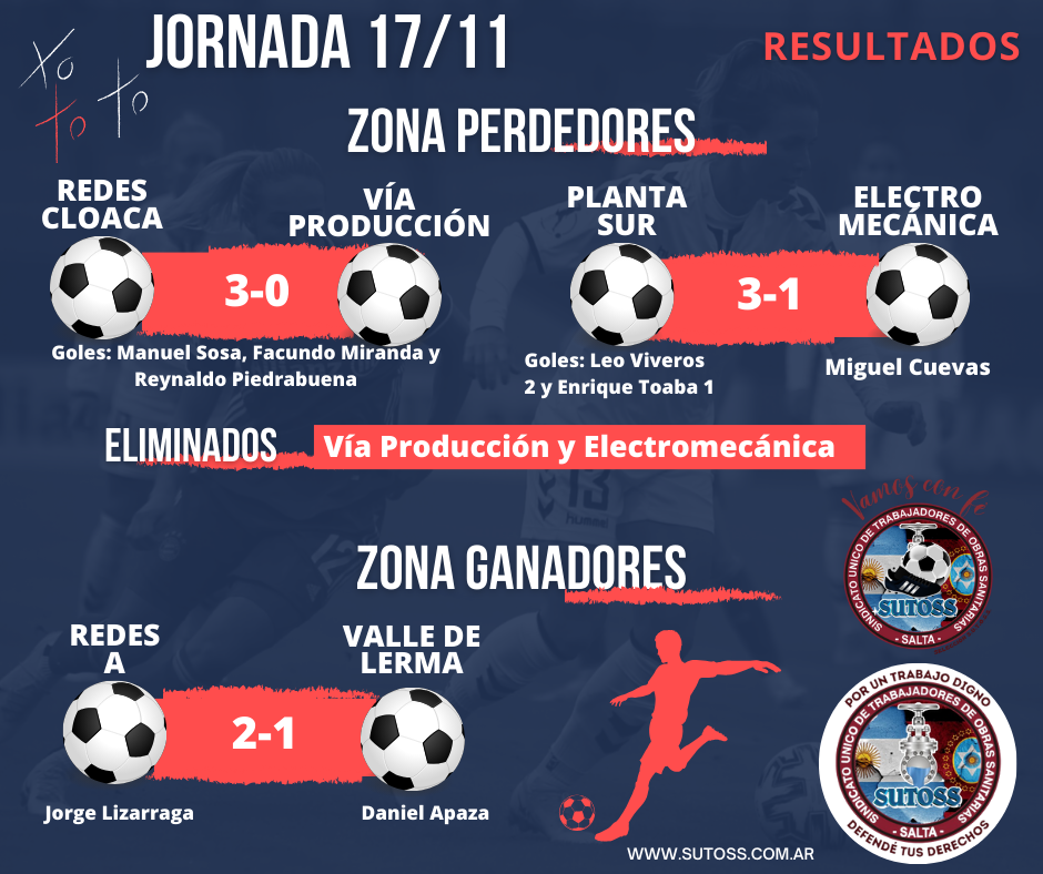 Luego de intensos partidos en los que nuestros compañeros dieron todo, de la zona de perdedores ganaron los equipos de REDES CLOACA y PLANTA SUR, y en la zona de ganadores pelearán por el primer puesto los equipos de REDES A Y COMERCIALES!!!
