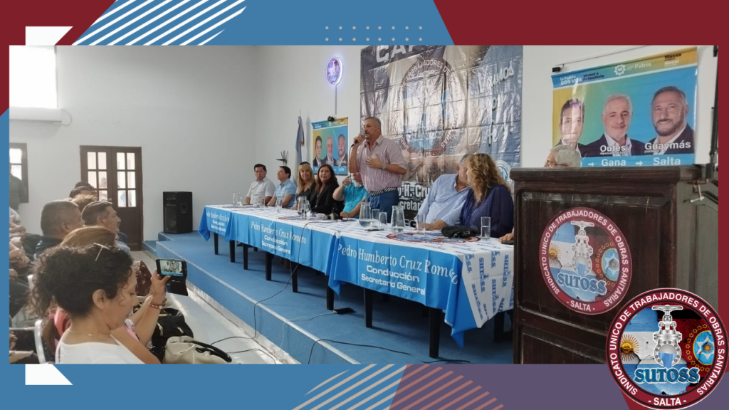 Con la presencia de Pablo Outes, candidato a Diputado Nacional, mediante comunicación telefónica, Jorge Guaymás, candidato al Parlasur, Yolanda Vega, candidata a Diputada, Carlos Rodas, Secretario Gral. de CGT, Martín Guaymás, Secretario Gral. de Camioneros, Fabián Guerrero de Panaderos, Arnaldo Ramos Secretario adjunto de ATSA, Zenón Cardozo de Alimentación y nuestro Secretario Gral. Pedro H. Cruz Romero, como anfitrión de ésta reunión, la cual se llevó adelante el día Viernes en el SUM Luis Álvarez del S.U.T.O.S.S. en calle Catamarca, ratificaron su total respaldo al también ministro de Economía y candidato a Presidente, Sergio Massa; expresaron su convicción de que el Peronismo Unido alcanzará la victoria el próximo 22 de octubre.