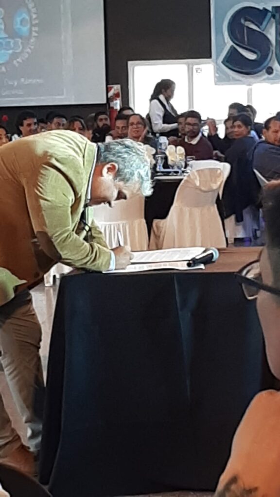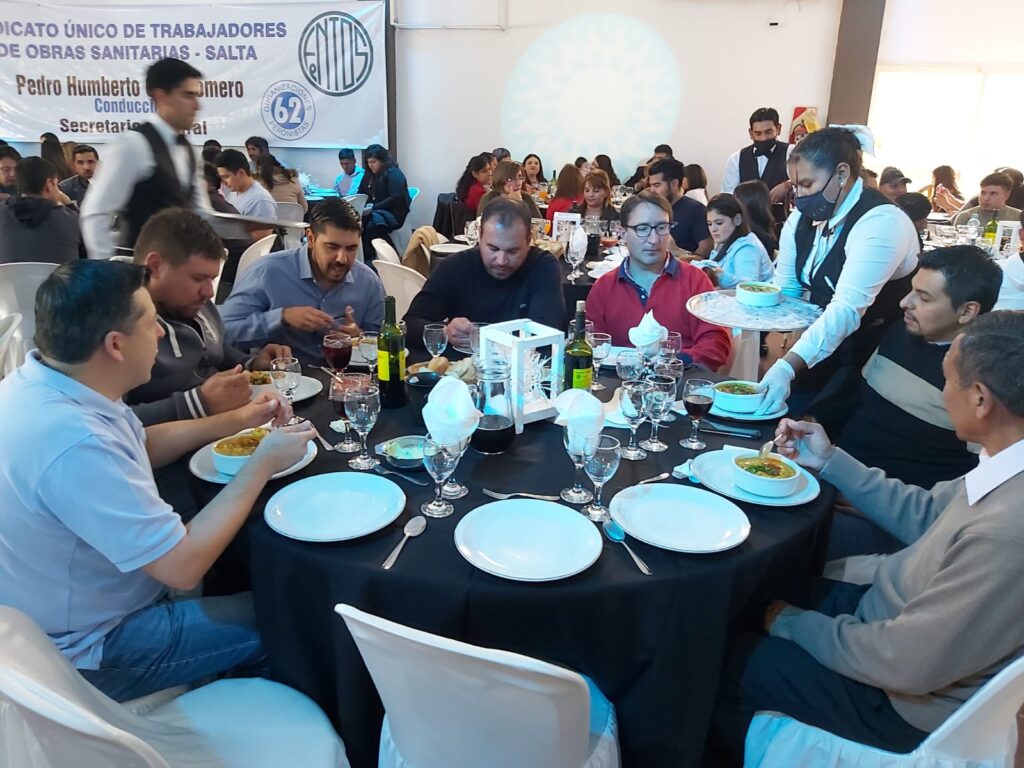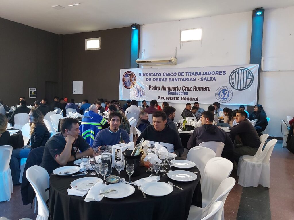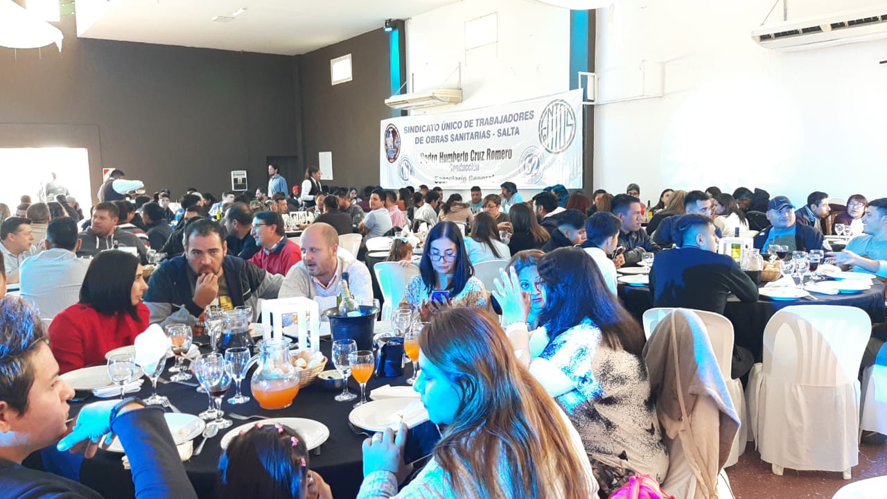 El almuerzo se disfrutó en los salones Elegance, al sur de la ciudad, animado por un divertido show musical.La celebración fue encabezada por nuestro Secretario General Pedro H Cruz Romero, que en la oportunidad firmó el acta donde se otorga lla recategorización, unificación de sueldos e ingresos a la empresa para los hijos de jubilados.Además contó con la participación de diversas autoridades sindicales y del gobierno, quienes expresaron gran alegría por poder volver a compartir esta ocasión de homenajear a los trabajadores en su día.